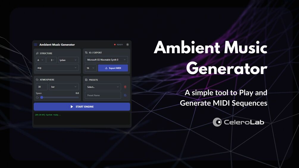 Ambient Music Generator is a simple desktop app that helps you generate and play musical MIDI sequences β instantly.